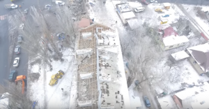 В сети опубликовано видео, на котором показаны последствия мощного взрыва, прогремевшего в Донецке 2 февраля. Видео снято при помощи БПЛА.