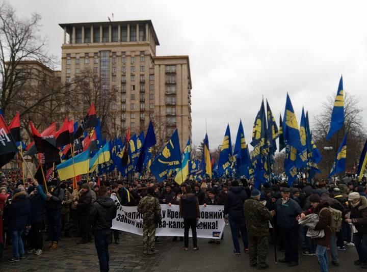 "По состоянию на 09:45 22 февраля участники формируют колонну. Она двинется от станции метро «Крещатик» (на выходе к Институтской).