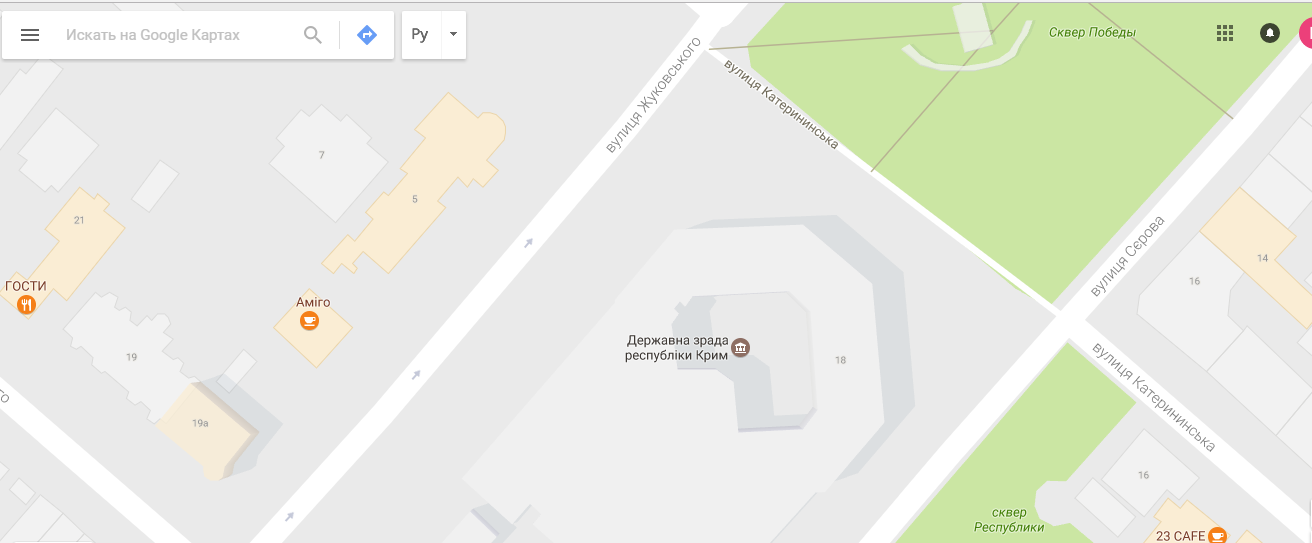 На карте оккупированного Россией Симферополя в популярном интернет-сервисе Google Maps появился новый объект – "Державна зрада республіки Крим".
