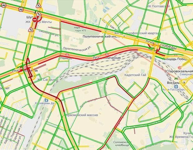 Кроме того, движение затруднено в центре на улице Бассейной и в районе Бессарабского рынка.