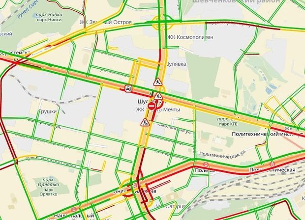 По состоянию на 9 утра 28 февраля столицу Украины парализовали 7-балльные пробки. Из-за обвала Шулявского путепровода серьезные заторы на улице Гетьмана,, Борщаговской, Чоколовском проспекте и Воздухофлотском проспекте.