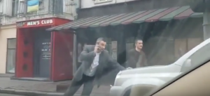 На видео заметно, что столичный мэр одной рукой толкает автомобиль, а другой держит - мобильный телефон.