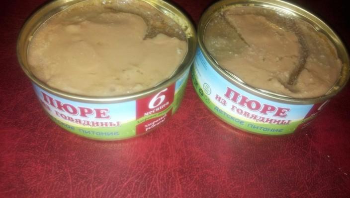 Как рассказывают местные жители, при вскрытии баночек с пюре из говядины и мяса цыплят сразу чувствуется резкий неприятный запах, к тому же на банках внутри видны следы окисления.