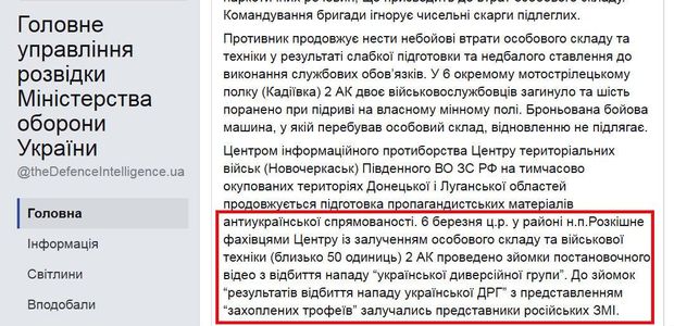 Об этом сообщает пресс-центр Главного управления разведки Министерства обороны Украины в Facebook.