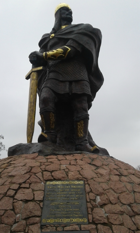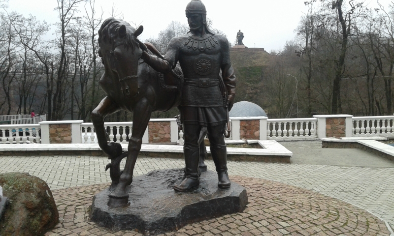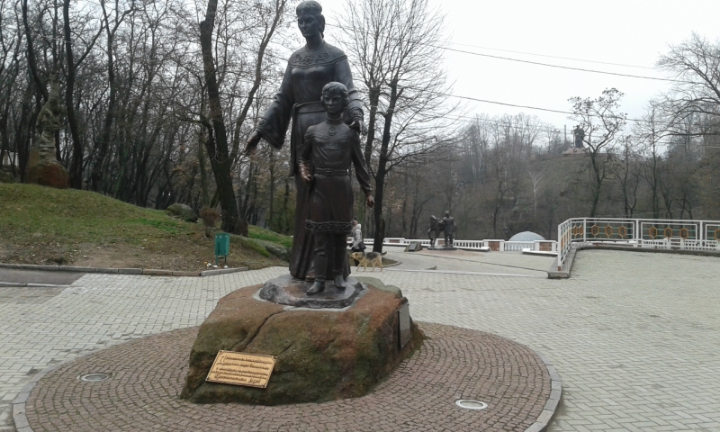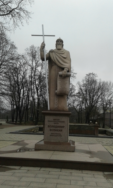 Конечно, город знаменит своей историей времен древлян. Здесь устроили прекрасный парк, в котором естественный рельеф хорошо сочетается с дорожками, лестницами и обзорными площадками. Наш гид сообщил, что памятник князю Владимиру обошелся в 1 млн. грн. Мать Владимира - Малуша - родом из Искоростеня, поэтому чуть дальше есть соответствующая скульптурная композиция.