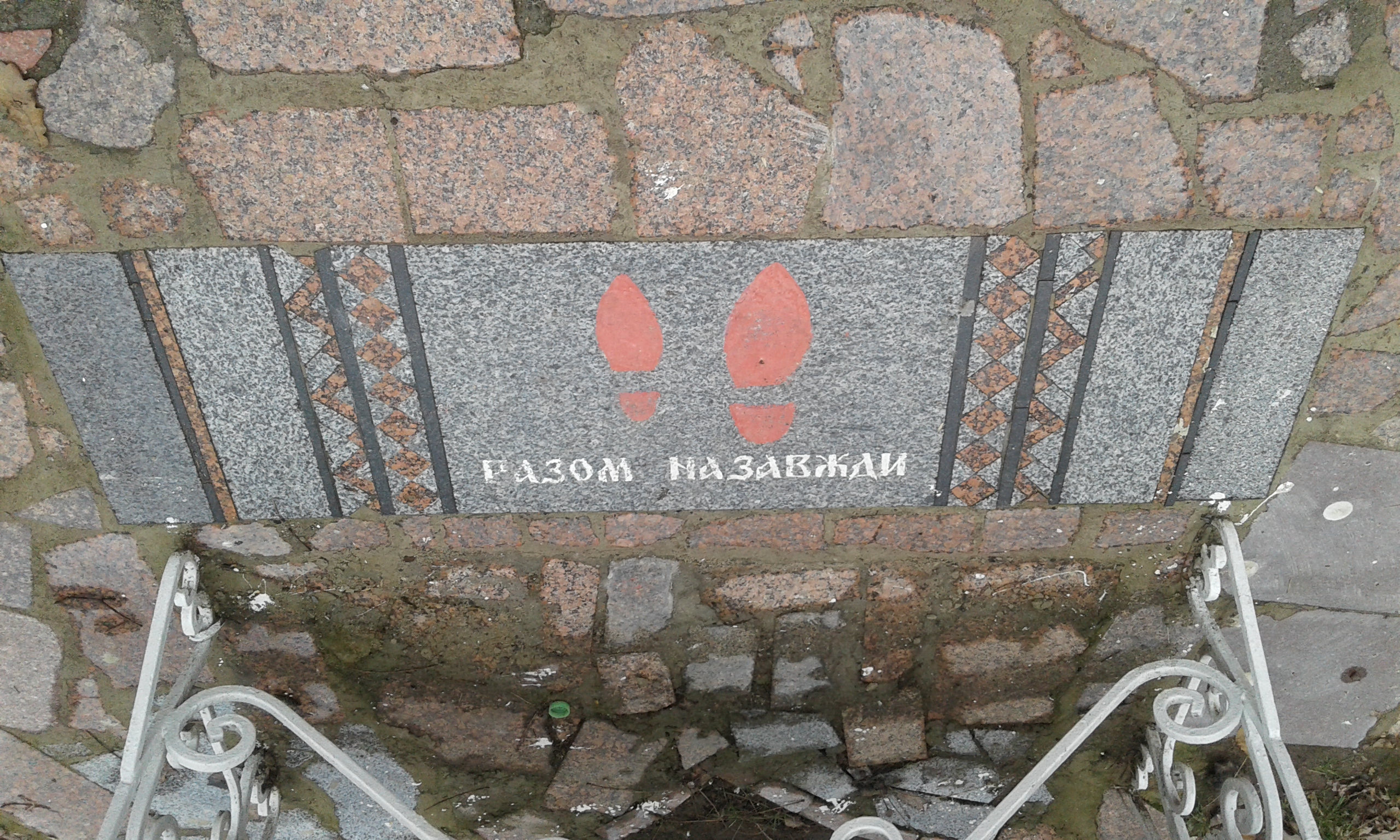 В парке много интересных скамеек, например, вот такая «примирения» возле одной из них выложен гранитный рушник.