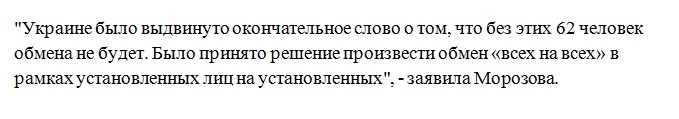 В "ДНР" думают, что они поставили Украине ультиматум, что, якобы, без этих 62 человек никакого обмена пленными не будет, и поэтому было принято решение об обмене всех на всех в рамках тех лиц, которые удалось идентифицировать.