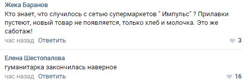 "#ДНР #Енакиево сеть Импульс (отжатое АТБ) после прикрытия фонда Поможем и режевоза гумки-харчей из #РФ -пустеют прилавки! Вата все понимает!" - написал Чернов.