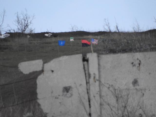 Он опубликовал фото флагов, среди которых не только знамена НАТО и «Правого сектора», но также флаги США и Ичкерии. По данным Ходаковского, они установлены в западной части полосы.