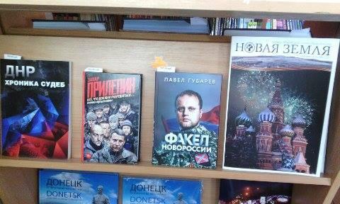 Особняком стоит пропагандистская литература к которой в ДНР относят работы Олеся Бузины (мир праху его), книги посвященные Новороссии - здесь вне конкуренции конечно Захар Прилепин, а также литература посвященная способности РФ "превратить США в радиационный пепел" представленная главным образом книгами ведущего российского телеканала РЕН-ТВ Игоря Прокопенко. Есть также журналы "Новая земля", в последнее время они чаще всего выходят с ликом погибших Мотороллы и Гиви.