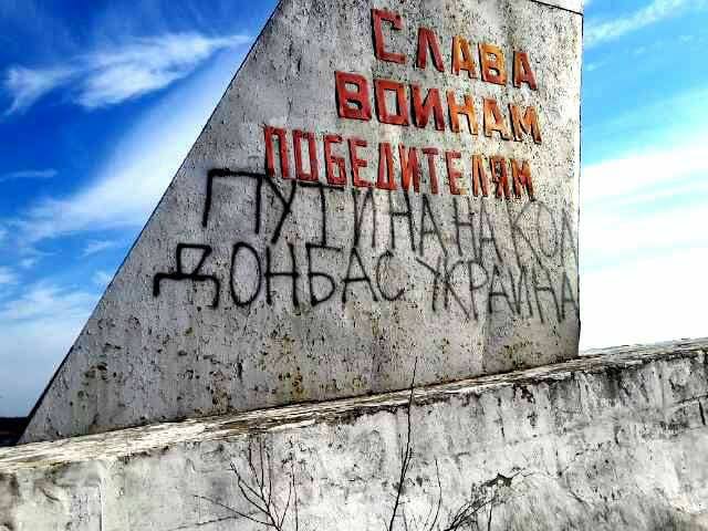 30 марта на стеле "Воинам освободителям", расположенной на холме около трассы между городами Хрустальный (Красный Луч) и Антрацит, луганские патриоты оставили послание президенту РФ Владимиру Путину.