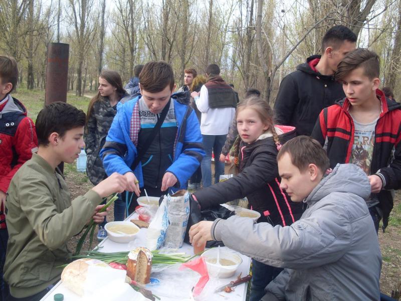 «Мы с волонтерами хотели поделиться украинскими народными традициями в Рубежном, организовали также небольшой этнофестиваль – «Пасхальные гаивки». Мы были рады праздновать вместе с местными жителями; сварить кашу, поиграть в игры и забавы, просто пожечь костер. Спасибо всем, кто пришли к нам на праздник! В Рубежном был организован также концерт группы «Один в каное». Зал был переполнен».