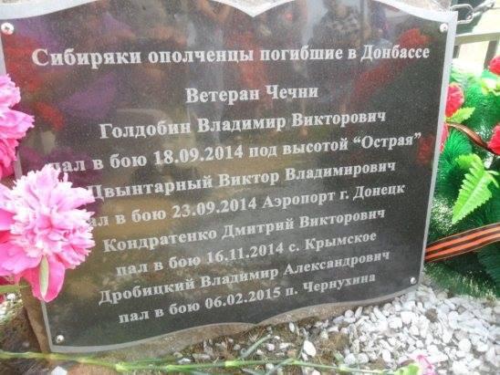 В сети обнародовали фото надгробной плиты, на которой значатся фамилии российских наемников из Сибири, погибших а разных районах зоны АТО на Донбассе.