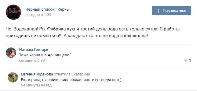 "Керчь хвастается. Хотя воды и нет,летом,в жару... Но зато иногда идет кока-кола. бизнес можно организовать-на розлив колу турЫстам", - написала в Твиттере блогер RoksolanaToday&Крым, опубликовав соответствующий скрин местного паблика.