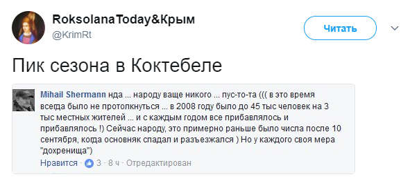 В оккупированном Коктебеле с туристами в этом году туго. Местные жалуются, что до раньше такое количество отдыхающих было только в конце сезона, в сентябре.
