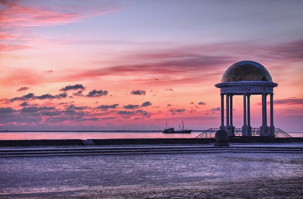 На фотографиях видно, что людей на пляже очень много: кто загорает, кто купается. На азовском курорте имеется горка, банан и катамараны. Также имеются палатки с прохладительными напитками.
