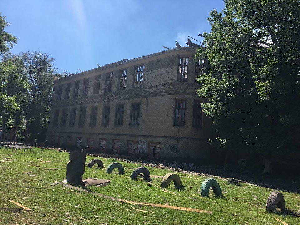 "28 мая нынешнего года вооруженные формирования ДНР обстреляли Красногоровку, которая контролируется ВСУ и стоит на самой линии разграничения. Тогда снаряды попали в жилые кварталы, и в числе прочих объектов была сильно повреждена школа №2. Снаряды разрушили крышу и перекрытия. Начался пожар, из-за которого часть здания выгорела.