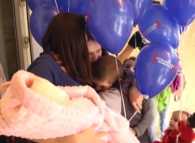 Когда роженицу забирали из роддома, она не могла сдержать слез. Девочка очень скучала за родными.