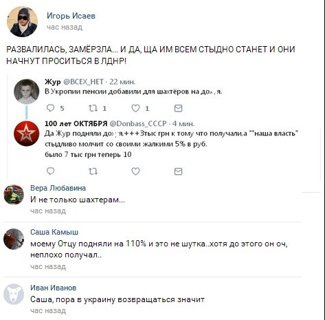 В соцсетях жители оккупированного Донбасса обсуждают увеличение пенсий в Украине. Как известно, многим гражданам, в частности, шахтерам, выплаты подняли на несколько тысяч.