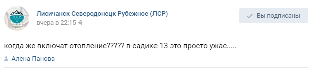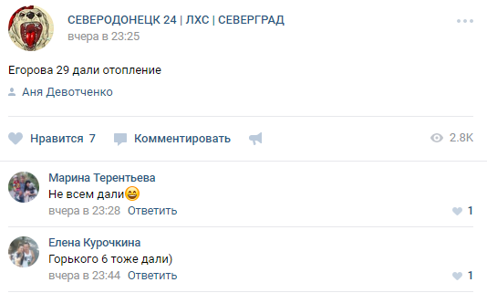 Лисичанск также понемногу «теплеет»: как стало известно вчера, НАК «Нафтогаз» дал устное «добро» открыть вентили «Лисичансктеплосети». Правда, никаких договоров еще подписано не было, однако уже вечером 24 октября жители некоторых районов Лисичанска начали сообщать в соцсетях, что тепло в их квартиры, наконец, пришло.