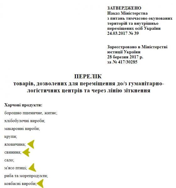 По данным корреспондента «Новостей Донбасса» на сегодняшний день список товаров, разрешенных для провоза через КПВВ, включает мясо птицы, свинину, говядину и колбасные изделия.