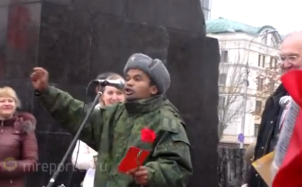 На праздновании сотой годовщины октябрьского переворота, которое проходило в оккупированном Донецке 7 ноября, настоящий фурор произвел Бенес Айо - национал-большевик из Латвии, вступивший в ряды боевиков "ДНР".