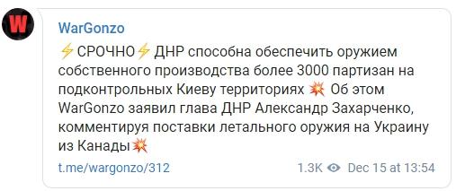 Такое заявление боевика последовало в ответ на решение Канады начать поставки летального оружия в Украину. Эту новость Донбасса передает Час Пик со ссылкой на СМИ.