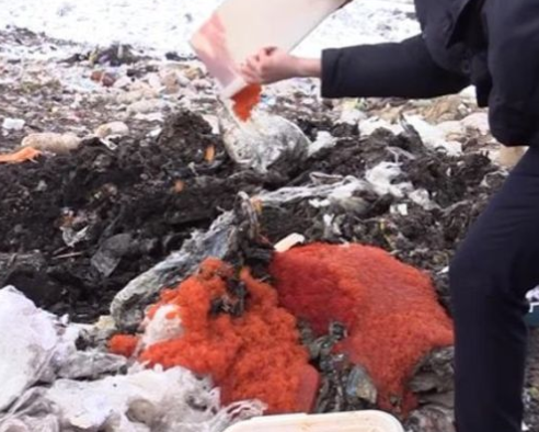 На YouTube-канале сепаратистского портала "Исток" опубликовано видео процедуры ликвидации икры. Конфискованную икру на свалке давили бульдозером.