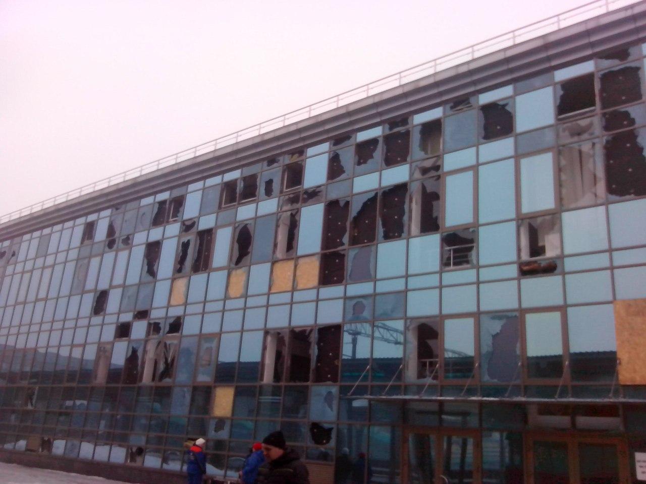 Место неоднократно подвергалось обстрелам. Много стекол в здании разбиты, крыша протекает, перроны давно заброшены.