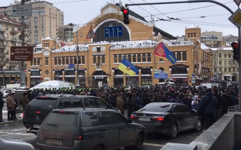 По сообщению депутата Киевского городского совета Вадима Васильчука, перекрыт Крещатик около Бессарабской площади, передает Час Пик.
