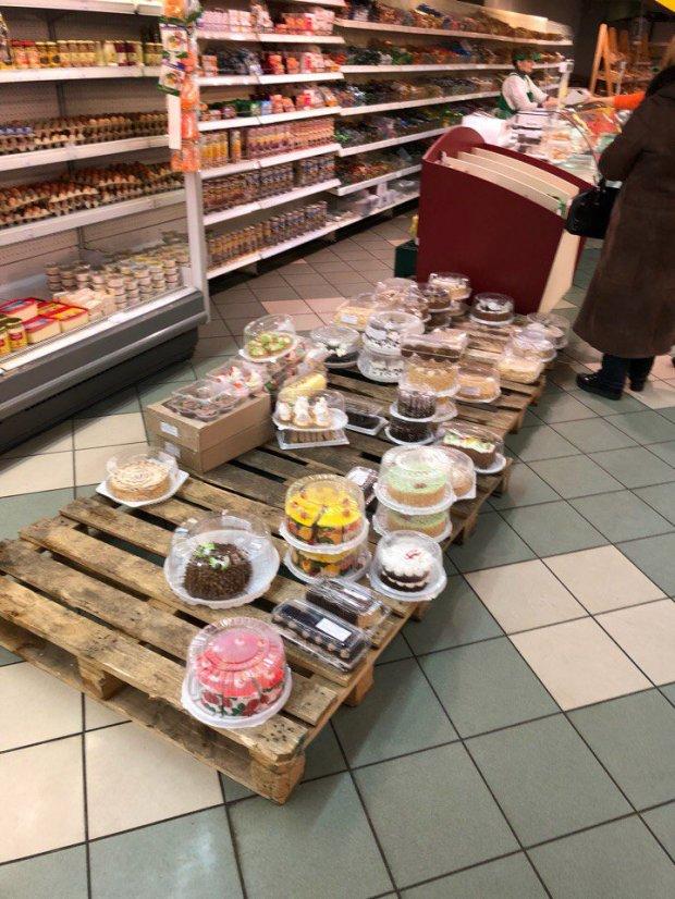 Накануне 8 марта в оккупированную Макеевку завезли праздничные торты. Посетители супермаркета "Обжора" показали снимок, на котором видно, что сладости в магазине поставили практически на пол - прямо к женским ногам.