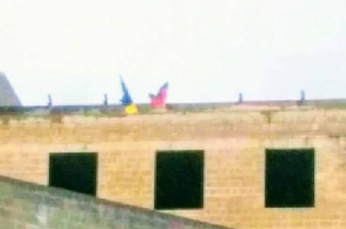 По словам журналиста, флаг висит на недострое в центре города Донецка.