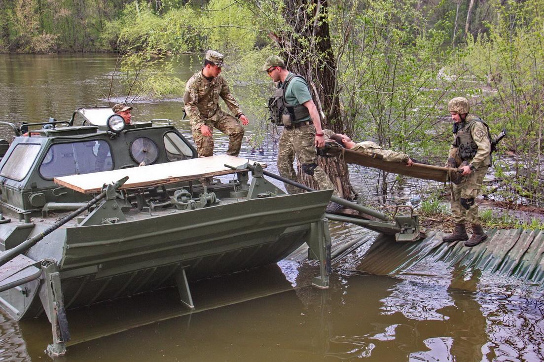 Кроме медицинской службы, к тренировке присоединились и инженерные подразделения, совершившие переправу раненых собственными плавсредствами.