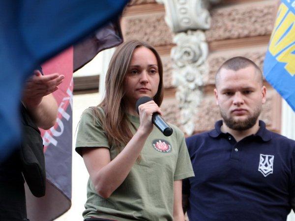 Руководитель одесской областной ячейки "Правого сектора" Татьяна Сойкина на "Марше украинского порядка" в Одессе 2 мая заявила, что Украина будет принадлежать "украинцам, а не жидам".