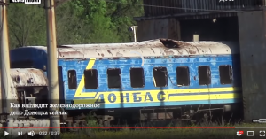 Один из пропагандистских каналов боевиков показал состояние железнодорожного депо Донецка после прихода "русского мира". На опубликованных кадрах видна пробитая снарядами крыша.