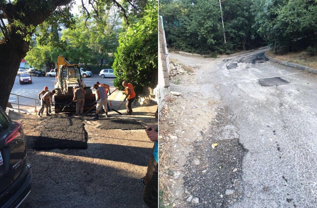 Жители Ялты в соцсетях пишут, что новый асфальт рассыпается от тычка ногой, колеса машин уже выбуксовали новые ямы. По утверждению пользователей, асфальт заливали прямо в мусор и пыль.