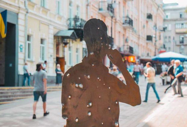 Со вчерашнего дня в центре столицы появились необычные скульптуры, призванные напомнить людям о том, что война на Донбассе не закончена и она совсем рядом. Простреленные металлические силуэты людей красноречиво напоминают об этом, новость Киева передает Час Пик.