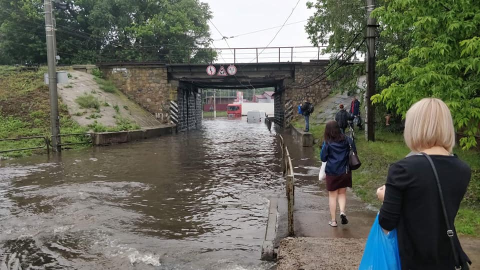 Жители города в соцсетях опубликовали фото и видео затопленных улиц, передает Час Пик.