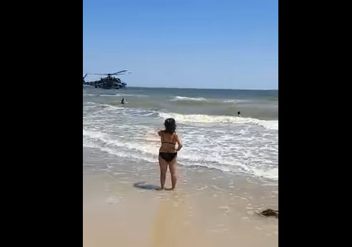 В районе Мариуполя, на пляже поселка Рыбацкое в считанных метрах над головами отдыхающих пролетел военный вертолет.