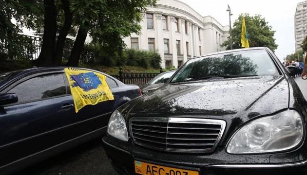 Сегодня, 11 июля, под Верховной Радой в Киеве проходит пикет автомобилистов на еврономерах. Митингующие запускают дымовые шашки на площади Конституции и скандируют "Позор!, передает Час Пик.