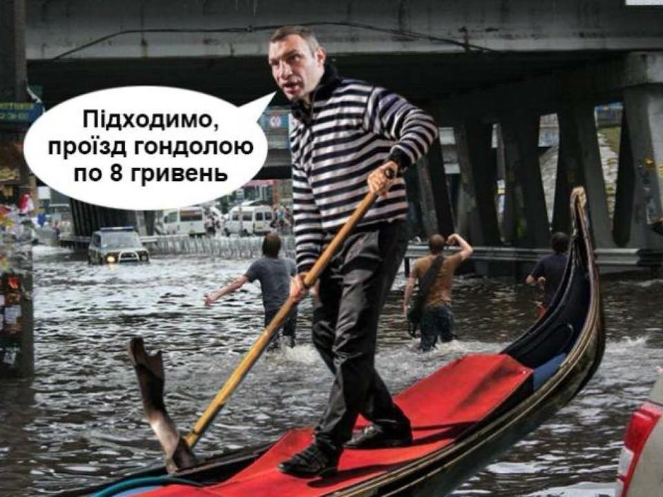 Советник мэра Дмитрий Белоцерковец сообщил в сети, что в столице есть проблемы с ливневками и этот вопрос постепенно решают, передает Час Пик. Интернет-пользователи, тем временем, делают фотожабы на эту тему и высмеивают мэра Киева Кличко.
