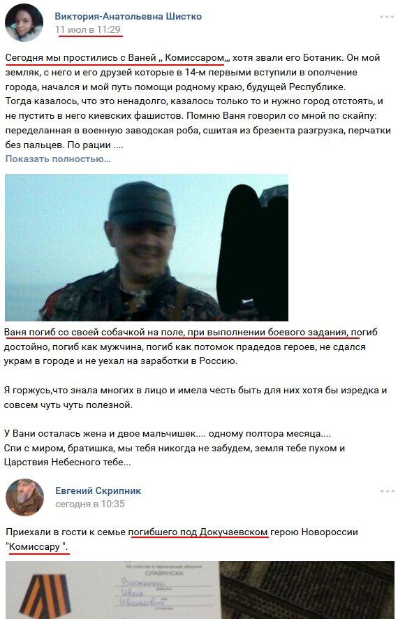 Так, 10 июля путем подрыва на мине в районе Докучаевска был ликвидирован боевик Важненко Иван Иванович с позывным "Комиссар", уроженец Запорожья. Как пишут в сети поклонники "русского мира", Важненко погиб со своей собакой на поле во время выполнения "боевого задания".