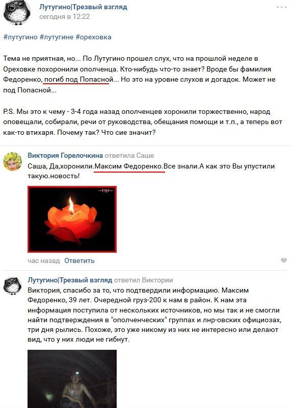 Кроме того, 22 июля в районе Попасной был убит боевик Федоренко Максим Александрович, родом из Лутугинского района Луганской области. Известно, что он служил гранатометчиком в "4 омсбр 2 АК".