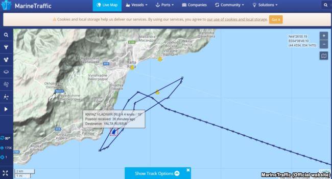 Российский круизный теплоход "Князь Владимир" сначала несколько часов не мог зайти в ялтинский порт, а затем и вовсе развернулся и поплыл обратно в Сочи.