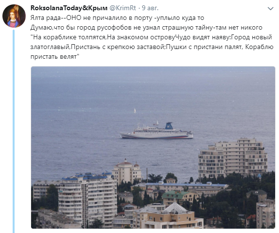 За похождениями "Князя Владимира" следили пользователи соцсетей. Блогеры отметили, что до оккупации Ялта принимала круизные лайнеры с тысячами туристов, а теперь крымчане вынуждены наблюдать лишь "комические корчи драной лохани".