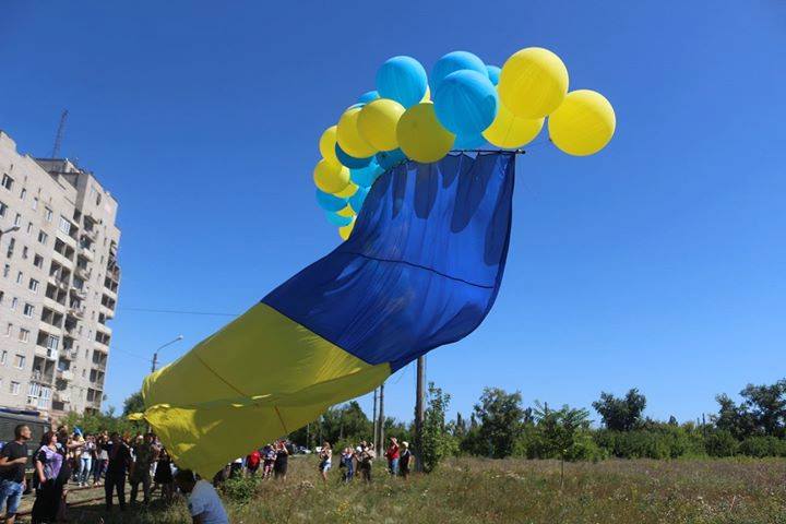В небо над Авдеевкой патриоты подняли самый большой флаг Украины, площадь которого составляет 120 квадратных метров.