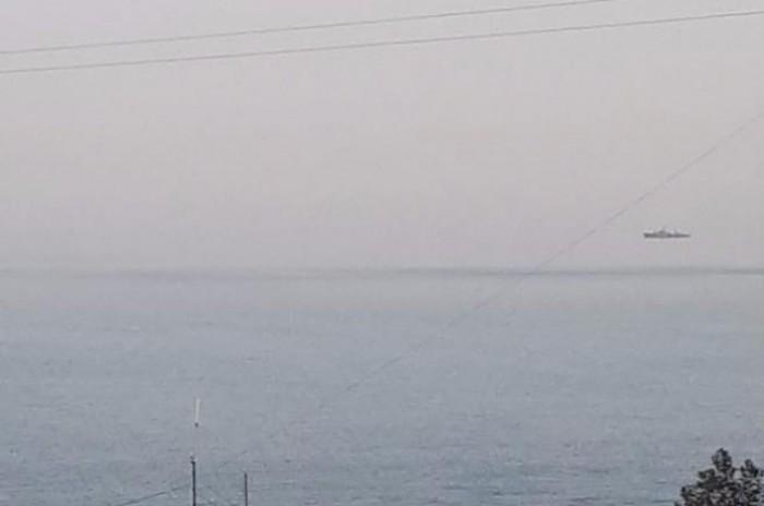 "Увидел корабль стоящий в море в Форосе. Как будто бы завис над морем)" - пишет очевидец.