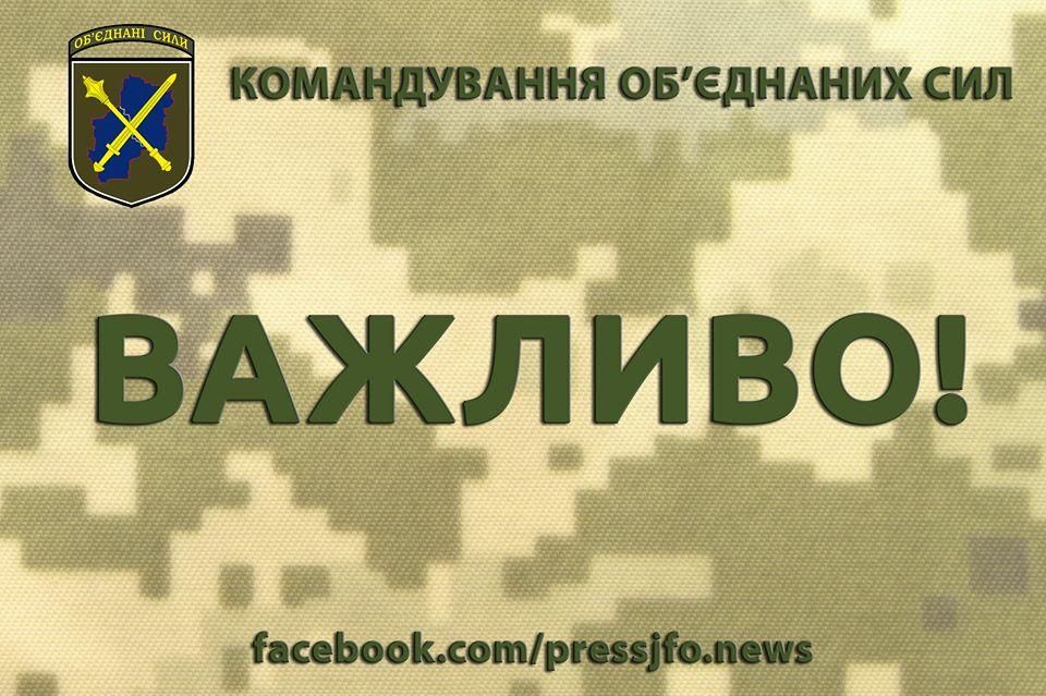 "Командование Объединенных сил сообщает, что ситуация на линии соприкосновения и на подконтрольной территории Донецкой и Луганской областей полностью контролируема. Военные части и правоохранительные органы в районе проведения операции Объединенных сил находятся в постоянной боевой готовности. Подразделения Национальной полиции, Национальной гвардии Украины пристально выполняют служебно-боевые задачи на блокпостах.
