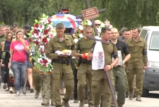 Охранника Захарченко похоронили на следующий день после "босса" - 3 сентября. На похоронах присутствовали главным образом боевики. "Славяна" провожали в последний путь с воинскими почестями.