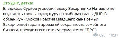 Известно, что Сурков приходится Наталье кумом: он крестил младшего сына убитого главаря "ДНР".
